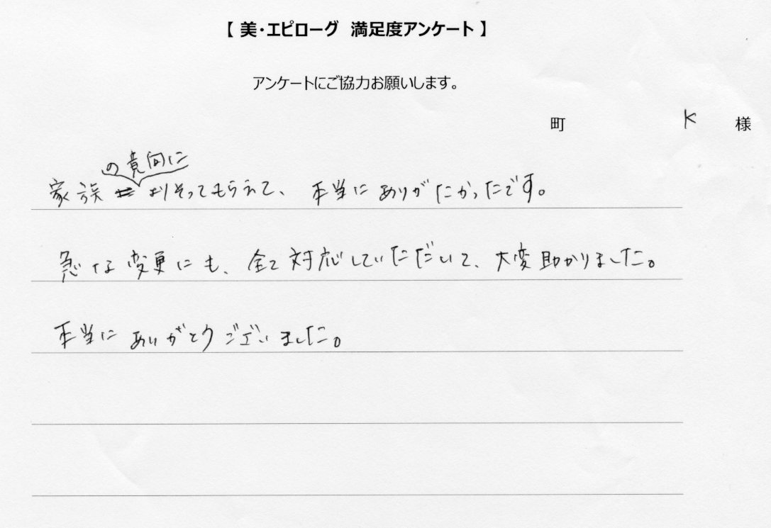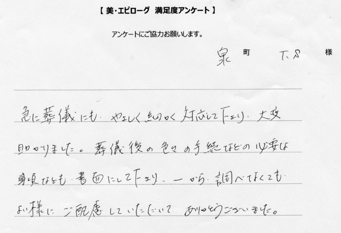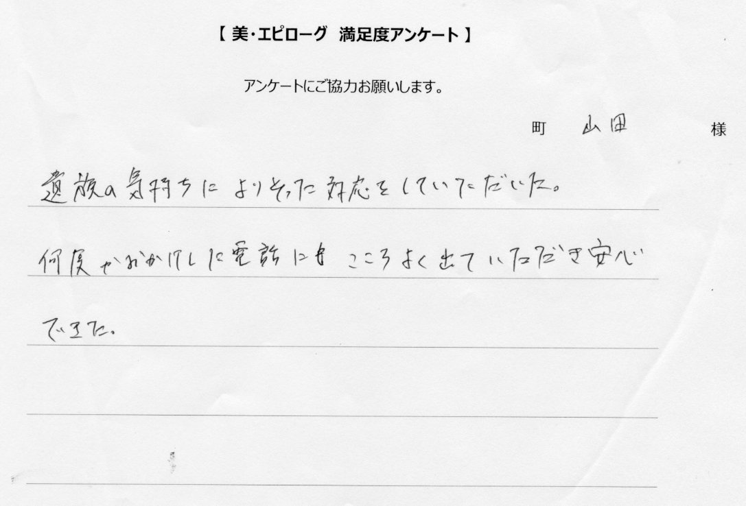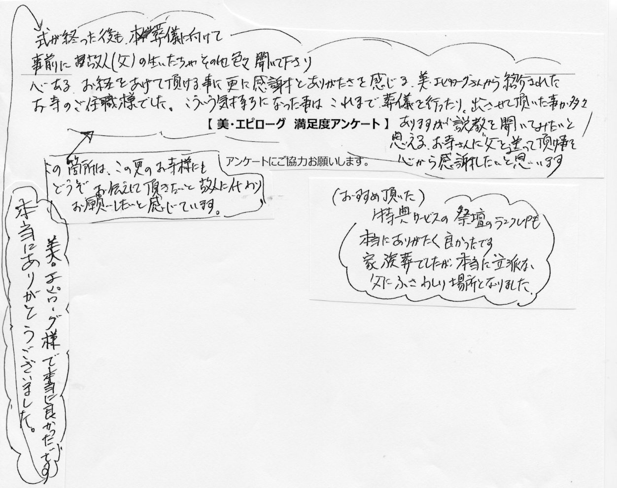 以前に美・エピローグでご葬儀をご依頼いただいたご遺族様へ
