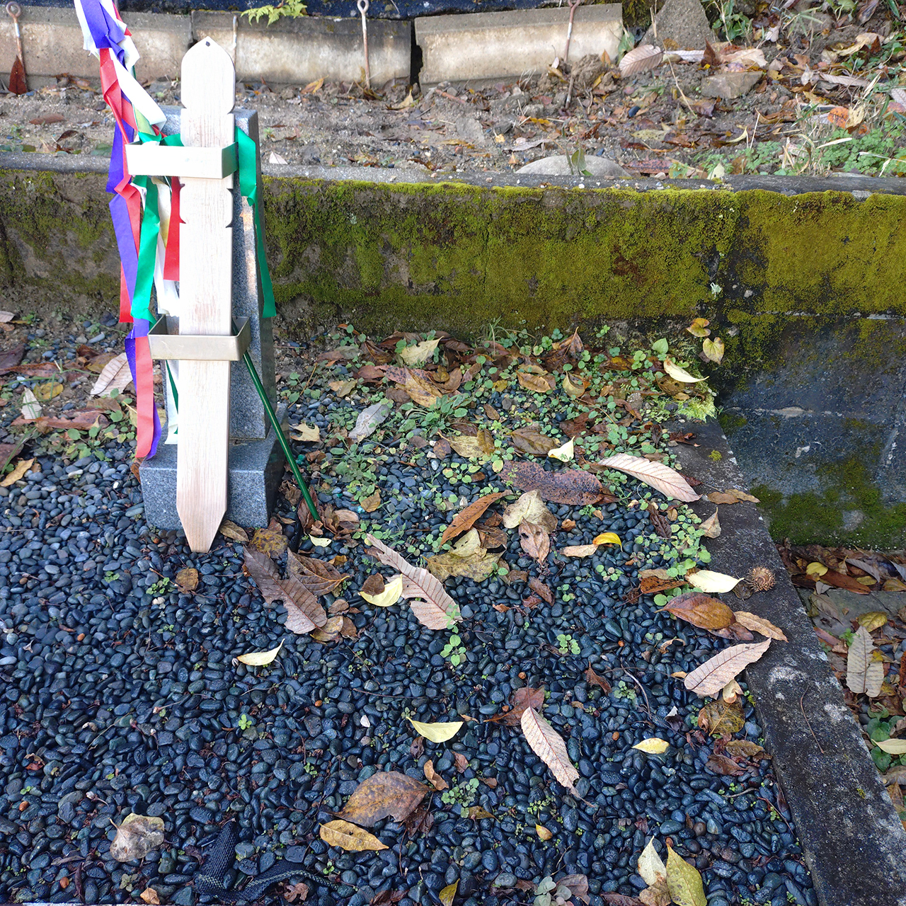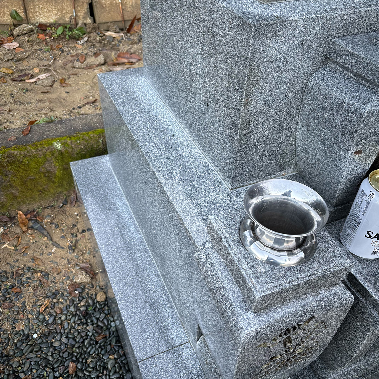 敷地内の草を全て抜き取り、墓石・墓誌の苔を全て取りました。