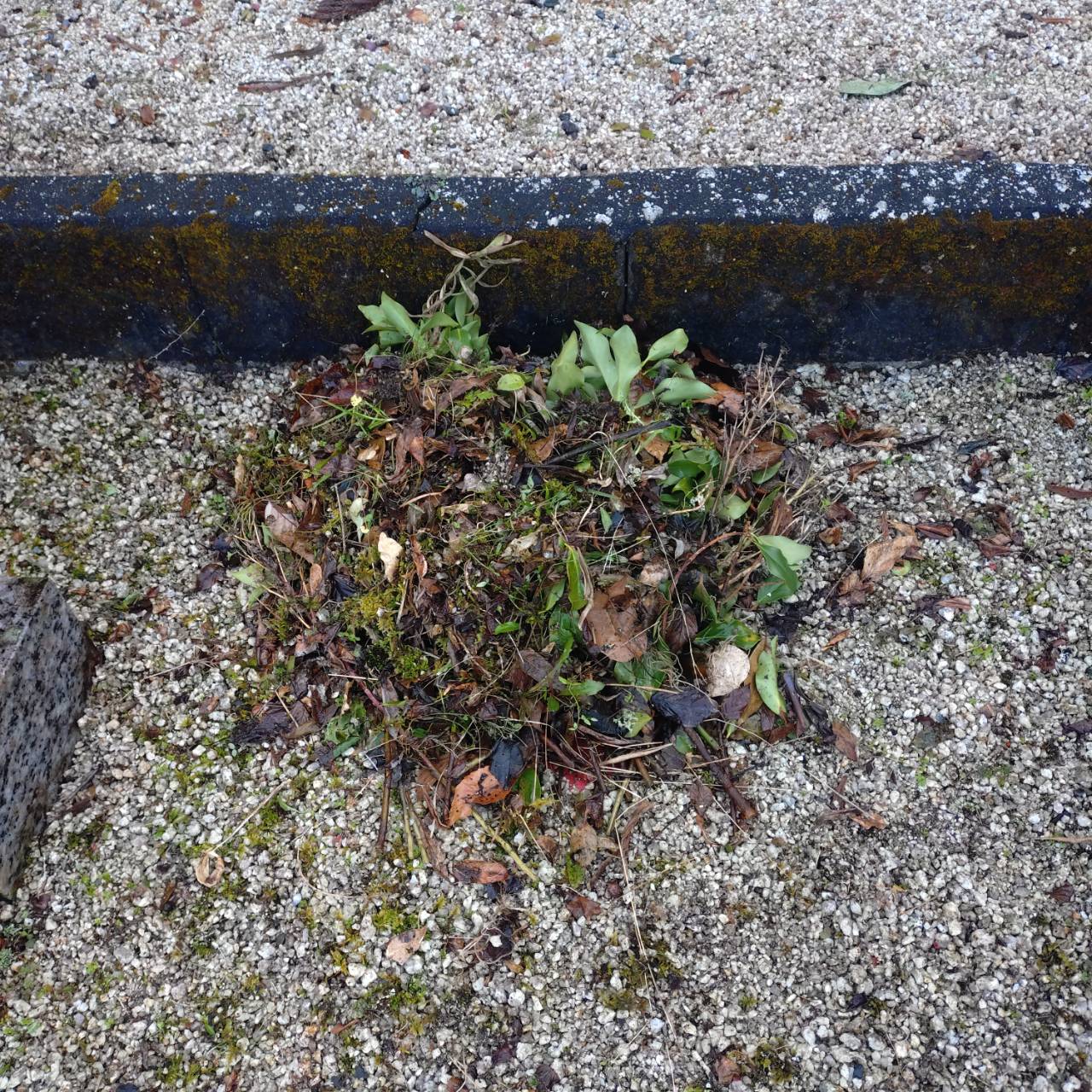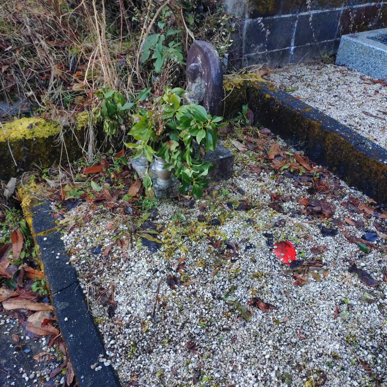 前日に雨が降ったのでぬかるんだ中での作業でしたが、墓石の苔取りと敷地内の草を集めました。