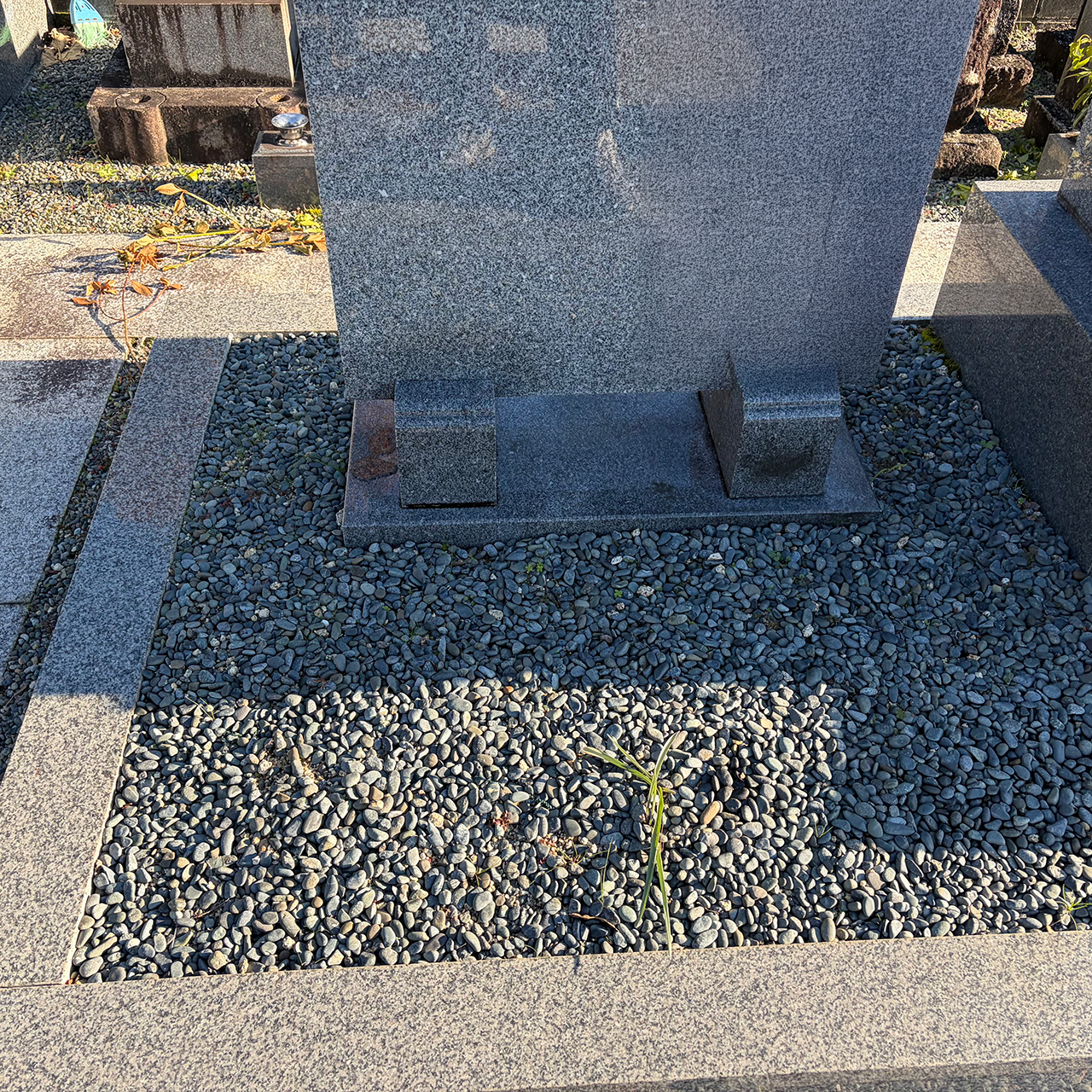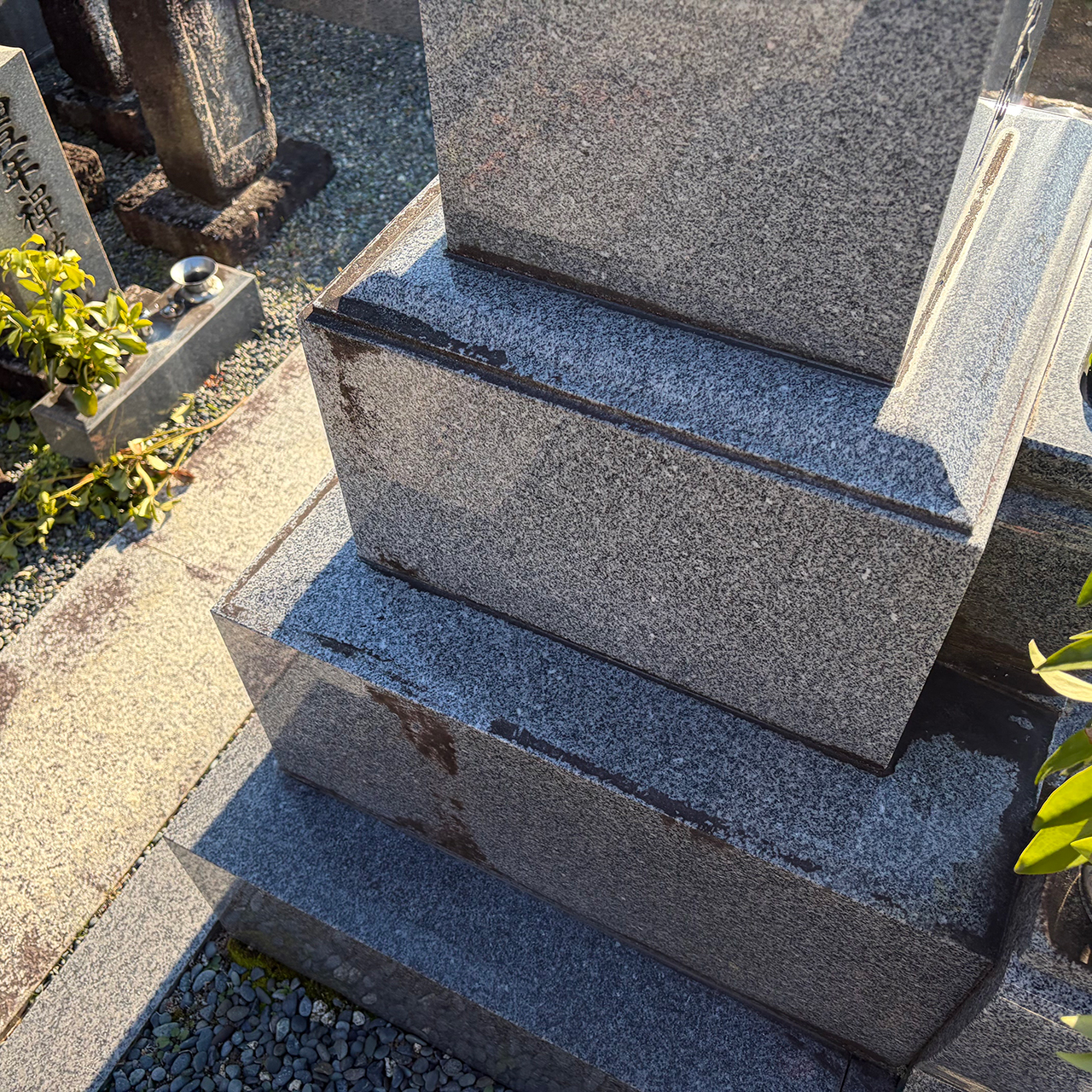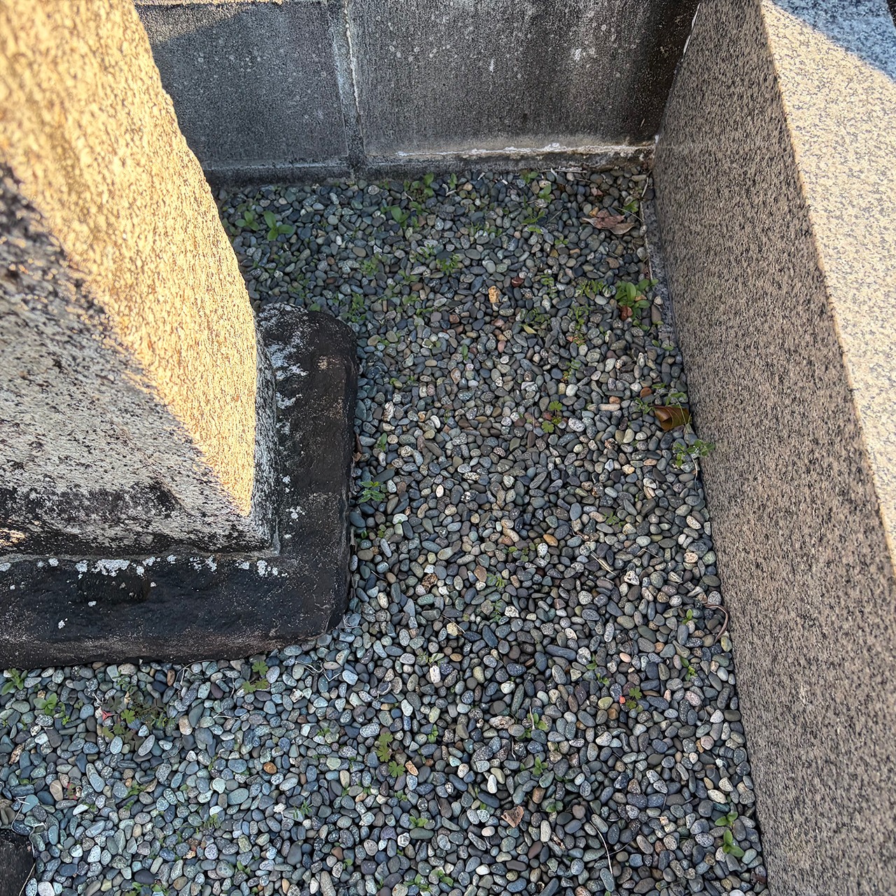 敷地内の草抜きと墓誌・墓石の苔取りを行いました。