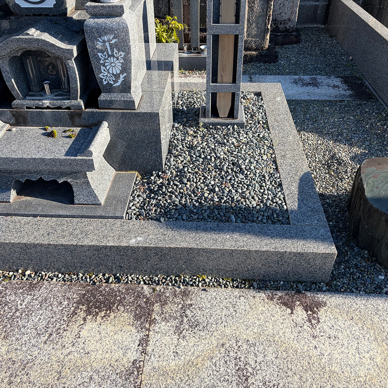 敷地内草抜きおよび墓誌・墓石の苔取りを行いました